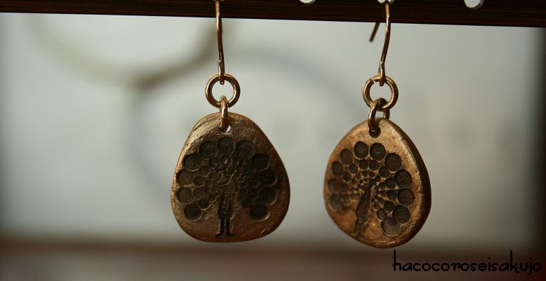 孔雀の模様のスタンプを使って作られました。