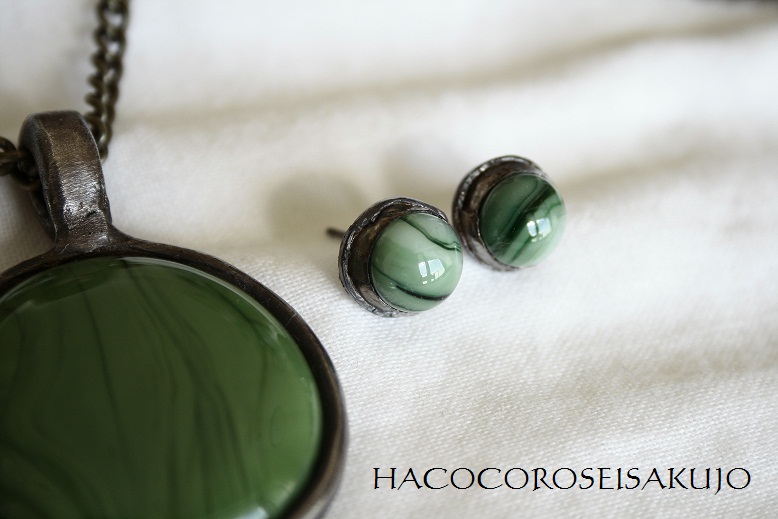 先日UPしたペンダントとお揃いのガラスで作ったピアスです♪