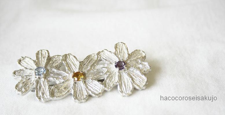 鏡面とテクスチャのコントラストが美しいブローチ。