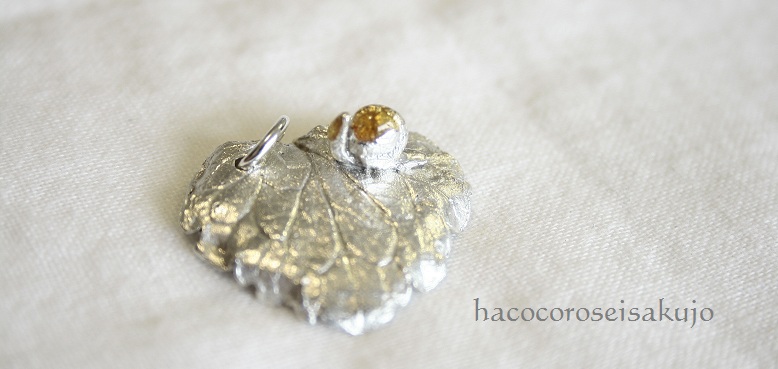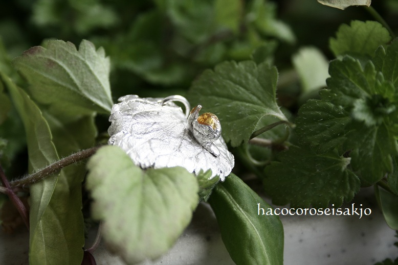 葉っぱに乗ったかたつむりに一滴の樹脂を。