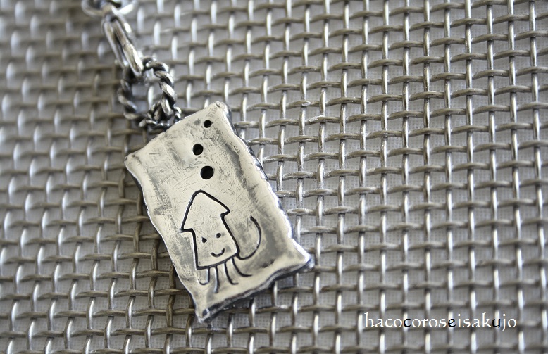 ニードルでイカの絵を彫り込んだプレートです^^